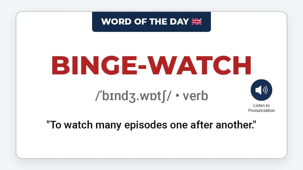 Todayโ€™s Word of the Day is Binge-Watch. In this lesson, youโ€™ll learn its pronunciation, meaning, and how to use it in daily conversations.